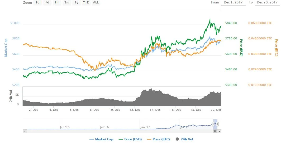 Earlier this morning, the world's second biggest cryptocurrency by market cap peaked over $3,200.